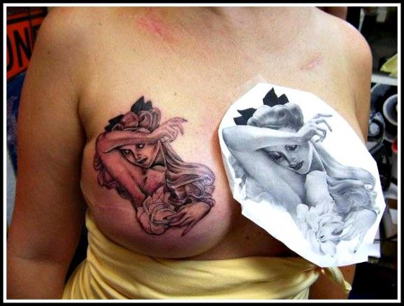 Tatuajes de cáncer de mama en particular, se han dado los medios de comunicación por su capacidad para devolver la esperanza y la autoestima de las mujeres. Cirugías de cáncer de mama , las mastectomías , son por desgracia experiencias difíciles para los pacientes con cáncer de mama , afectados en su feminidad por la pérdida de sus pechos, areolas y grandes cicatrices. Pecho y el pezón reconstrucciones no son siempre una opción, pero los tatuajes podrían ser una. Tatuador pueden recrear areolas y las cicatrices de la cubierta con diseños hermosos y positivos. Los tatuajes ayudan a las mujeres con el trauma de su cuerpo dañado y reconsiderar sí mismas como bellas , femenino y lleno de vida.
