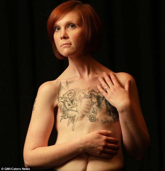 Survivor Kelly Davidson muestra su tatuaje doble cubierta mastectomía.
