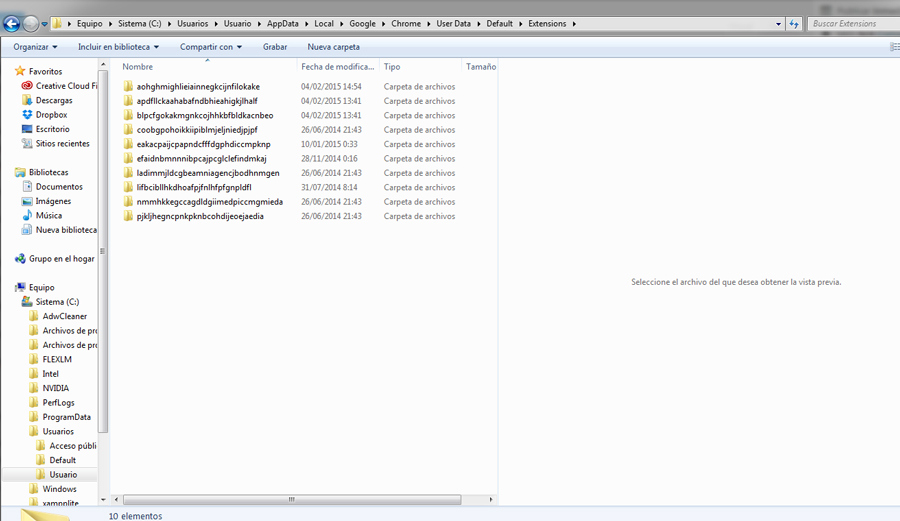 /App Data / Local/ Google /Chrome/ User Data/Default/Estensions
