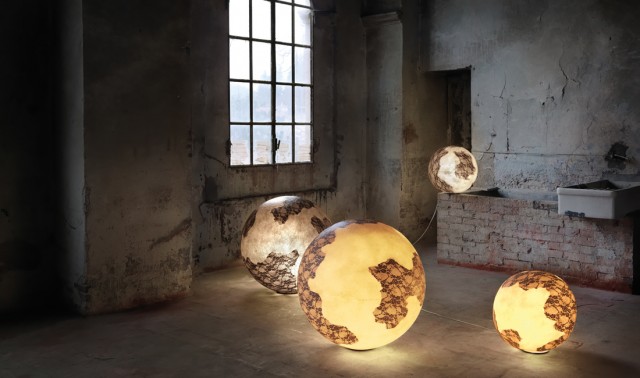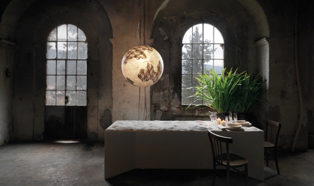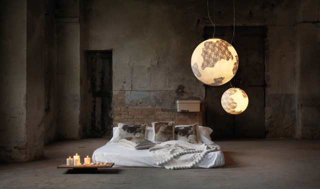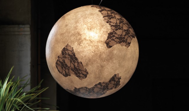 Ululì-ulula por Matteo Ugolini para Karman, luminaria fabricada con fibra de vidrio y pintada con aplicaciones de encaje. Un diseño de líneas suaves y de una tradicional elegancia, que evoca la misteriosa luz de la luna con un lenguaje vanguardista.