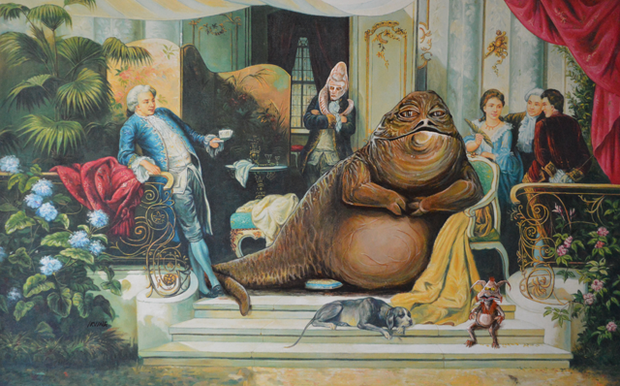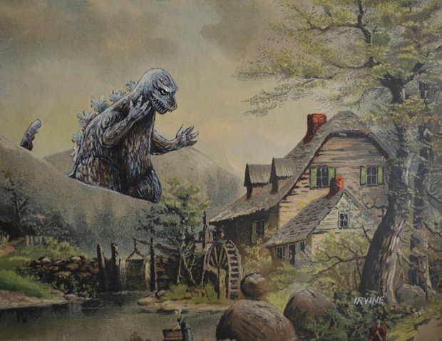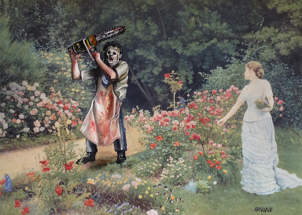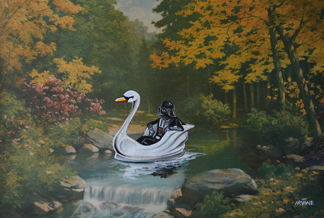 David Irvine es un artista que consigue cuadros en tiendas de segunda mano, para después intervenirlos añadiendo personajes de la cultura pop, llenándolos de vida y surrealismo.