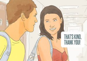 Si el te comienza a decir cumplidos, intenta no sonrojarte o sentirte alagada solo agradece y de forma rápida sonríe, vuelve al tema que estaban antes de eso o propón alguno. No digas estas frases después de un cumplido