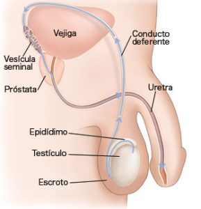 Testículos: Son las gónadas masculinas, coproductoras de los espermatozoides y de las hormonas sexuales.