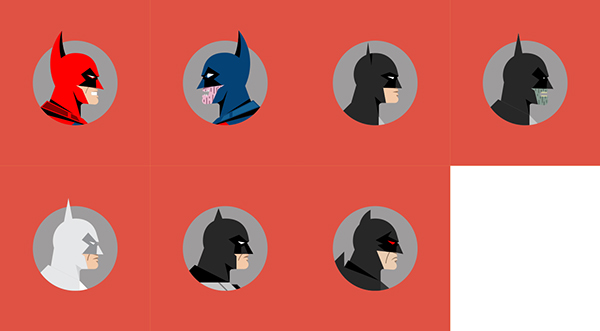 Batman Two Face Right • Batman Two Face Left • Batman Dick Grayson • Batman Black Lantern • Batman White Lantern • Batman Incorporated • Batman Thomas Wayne