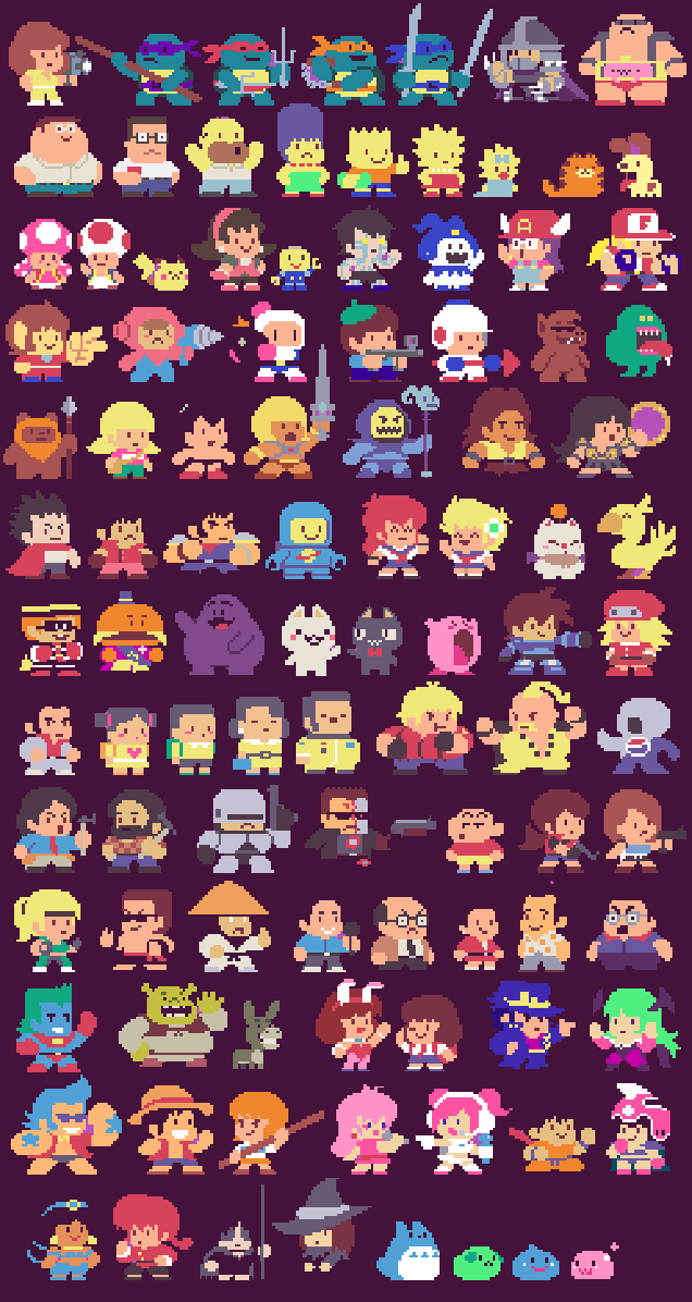 El gran artista del pixel Paul Robertson lo volvió a hacer... Se regresó a 1986 y se inspiró en un classico juego de TAITO *Bubble Bobble. Tomó a 300 personajes de la cultura Pop y los reinvento al estilo de la vieja escuela. ¿A cuántos reconocen?