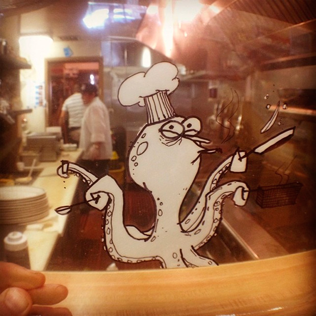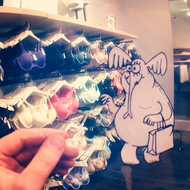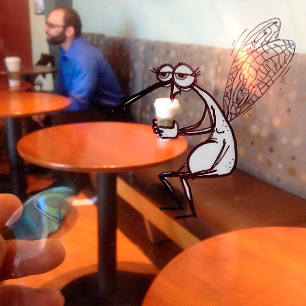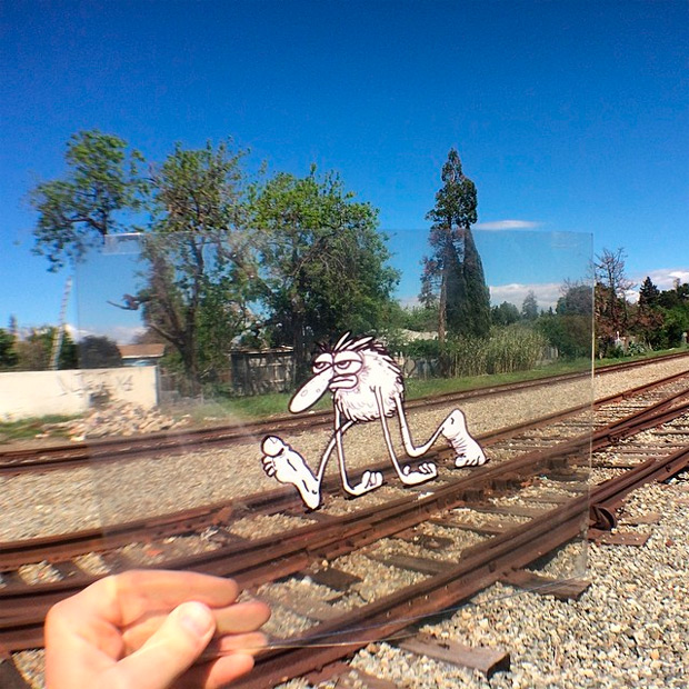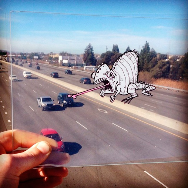Marty Cooper es un guionista gráfico y también escritor de origen estadounidense con un talento muy especial para convertir la vida real en hilarantes chispazos de divertida creatividad. Este artista dibuja sobre láminas de acetato transparente todo tipo de personajes ficticios, utilizando para ello rotuladores de color, para después superponer dichas láminas en imágenes reales de su día a día; en la cafetería, en el supermercado, en la gasolinera y en cualquier rincón olvidado de una ciudad. El resultado no es otro que una divertida colección de ilustraciones superpuestas en el mundo real que nos invitan a sumergirnos en la desbordante imaginación de su autor y, de paso, disfrutar de un rato divertido.