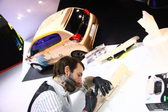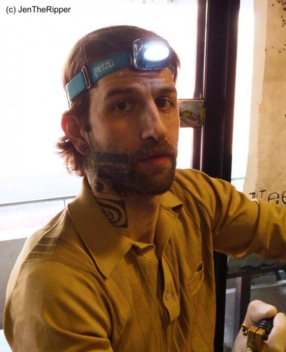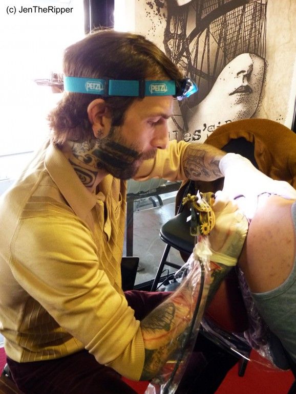 El artista del tatuaje Francés Xoil en Tattoo Convention Rennes, debido a su exitosa carrera internacional y trabajar con las industrias de lujo.