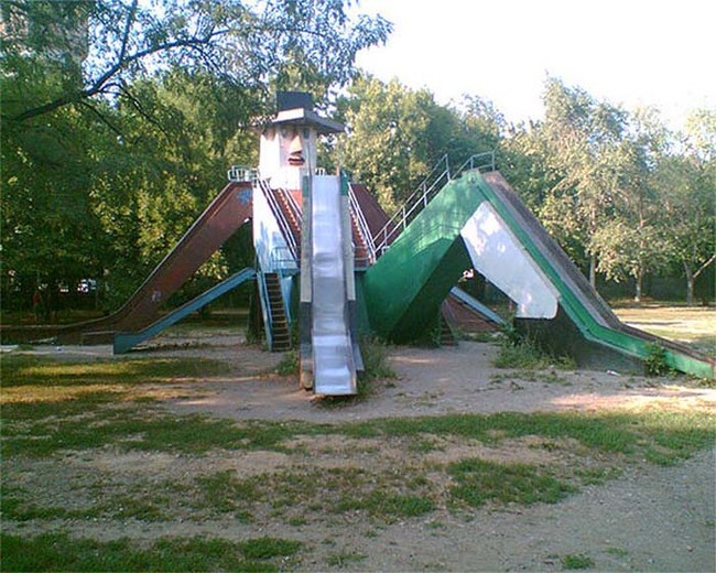 Cuando era niño lo mejor que podía pasar era que me dejaran ir a pasar la tarde en el parque. De los que más me acuerdo, son del que estaban por casa de mi abueltia, donde habían puros tubos con forma de carcacha, un pez y resbaladillas de metal oxidado de como 7 metros ¿Qué más podía pedir un niño? Ahora ya no existen ese tipo de parques, hoy casi todos los juegos son de fibra de vidrio o plástico y con protecciones, no vaya a ser que los niños se vayan a raspar... Pero bueno, es mejor no quejarse y agradecer de no haber tenido una infancia en Rusia, donde al parecer los parques son utilizados como centros de tortura y castigo para que los niños tengan las mejores pesadillas ever!